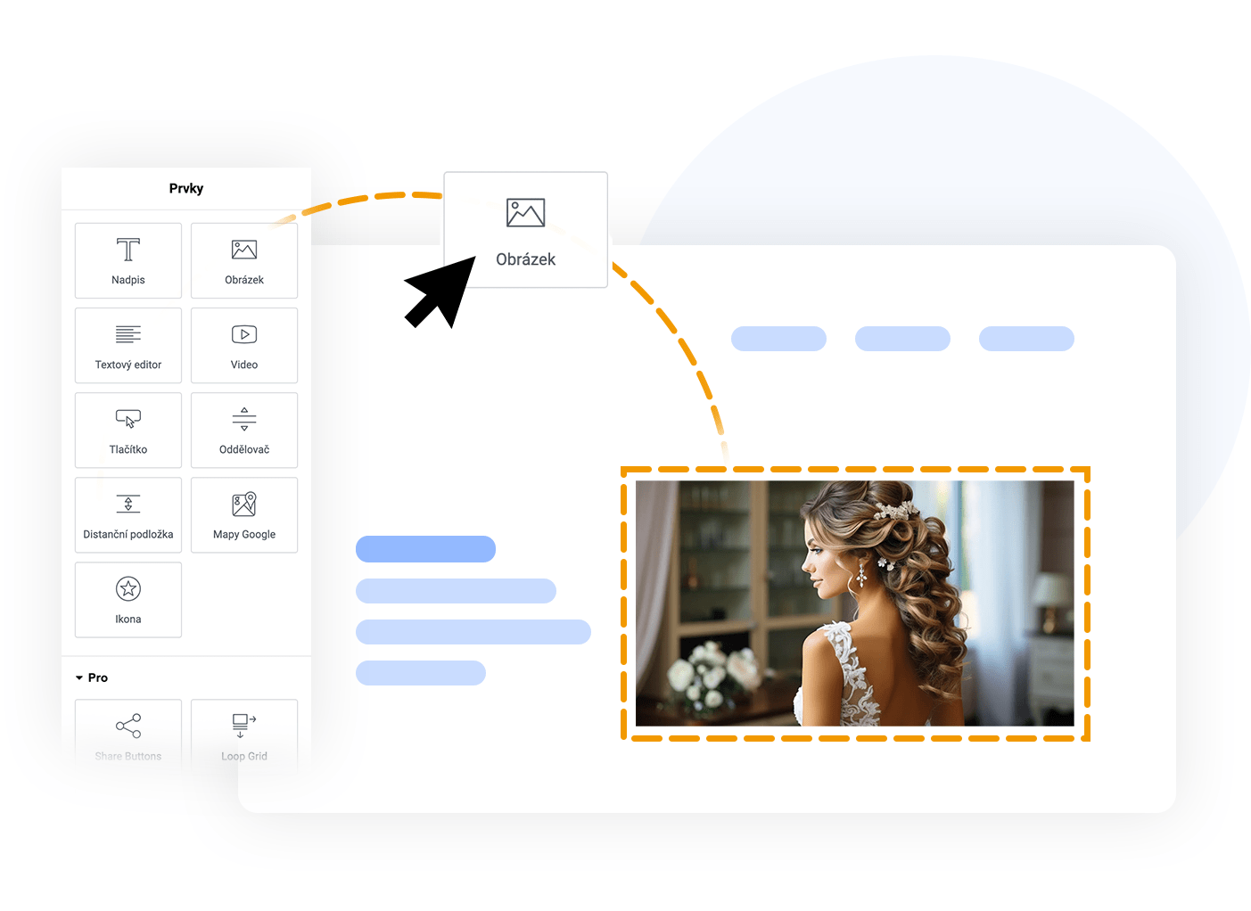 - Díky intuitivnímu editoru jednoduše vyměníte na 2 kliknutí texty, obrázky, barvy a další prvky.